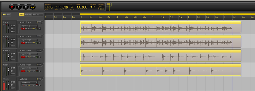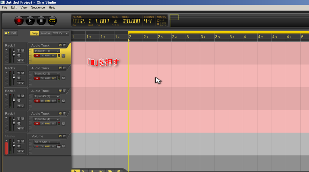 OhmStudioには、他の無料DAWと違って「同時録音数制限」がありません。