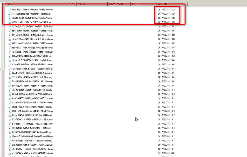 作成日時が「2017/02/01 11:20」のファイルが4つあります。